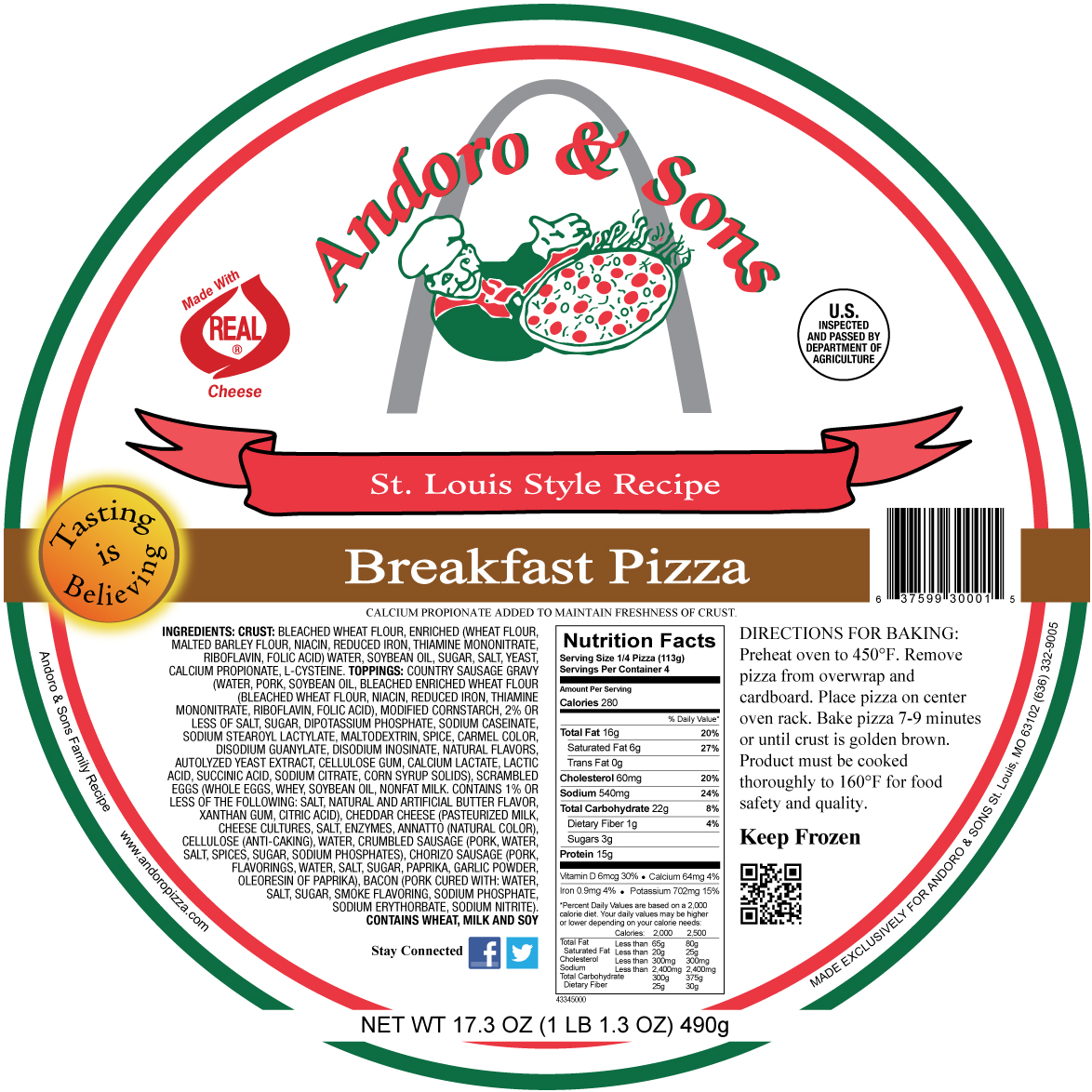 Our Breakfast Pizza is very tasted. We use ChefMate Gravy and top with crumbled sausage, chorizo sausage, bacon, scrambled eggs and sharp cheddar cheese. This bundle pack includes 2 -9″ Breakfast Pizzas