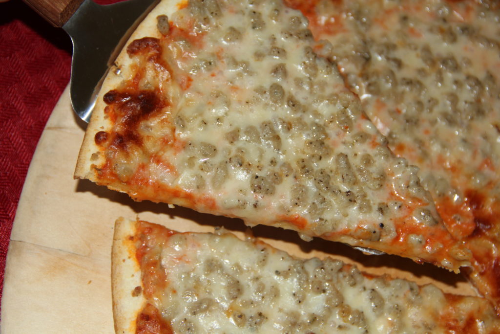 Andoro & Sons St. Louis Style Pizza… a thin crust with crumbled sausage on this yummy pizza, with our unique 5 St. Louis Style Pizza Cheese blend. This sausage has no additive and is classified by USDA as 100% sausage. It is a fine pork sausage, that only the real sausage lovers will appreciate. Try one today! It arrives frozen and fresh.
